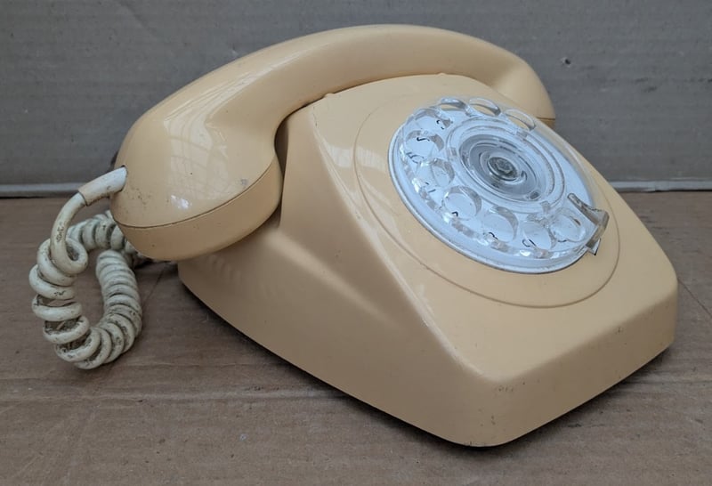 VINTAGE RETRO ROTARY DIAL PHONE BEIGE COLOURItem Size: Height: 10cm, Width: 20cm, Depth: 25cm, Weight: 1KgCondition: Good - Refer To Images7A586809+6