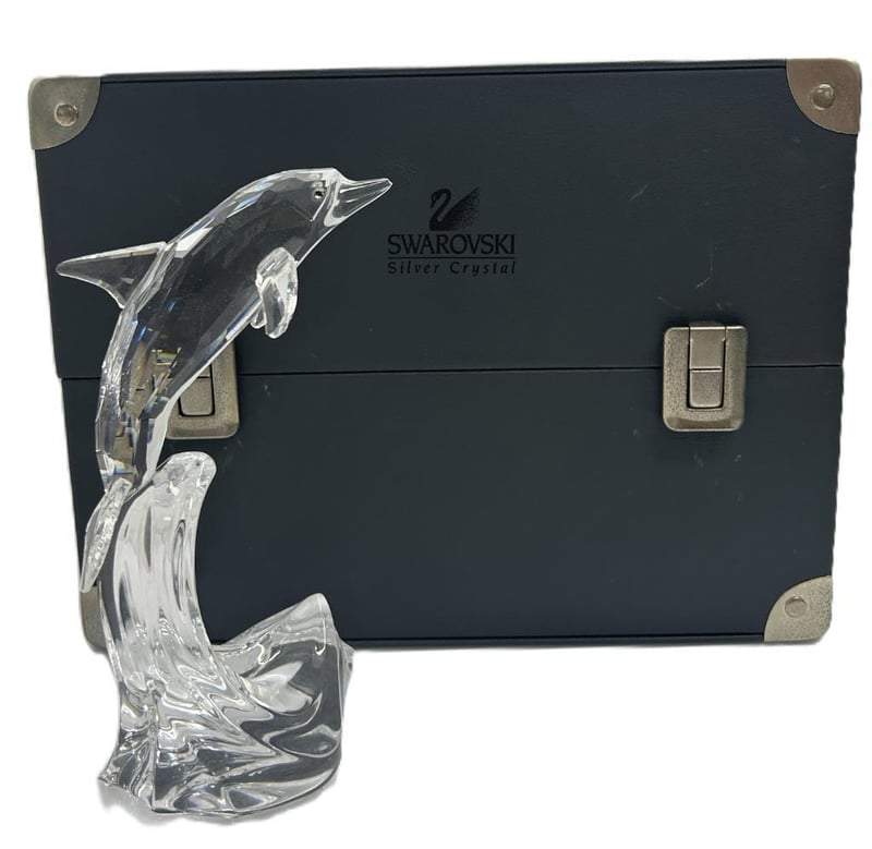 VINTAGE SWAROVSKI CRYSTAL MAXI DOLPHIN IN HARD CASE, HEIGHT 22CM, INCLUDES OUTER BOX, CIRCA 1998, NB THE PADDING IS STARTING TO DETERIORATE DUE TO AGE.