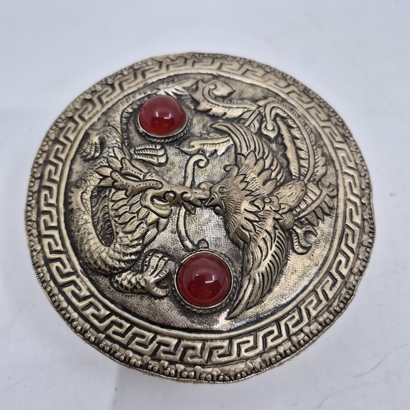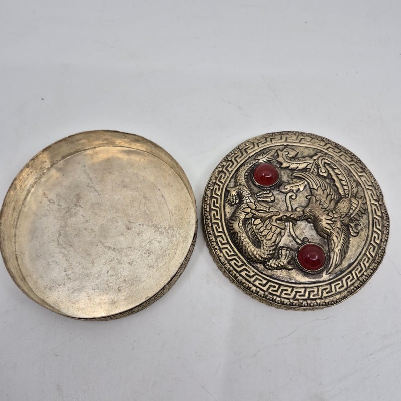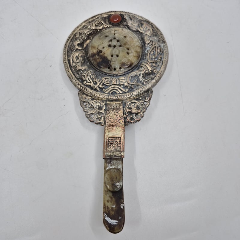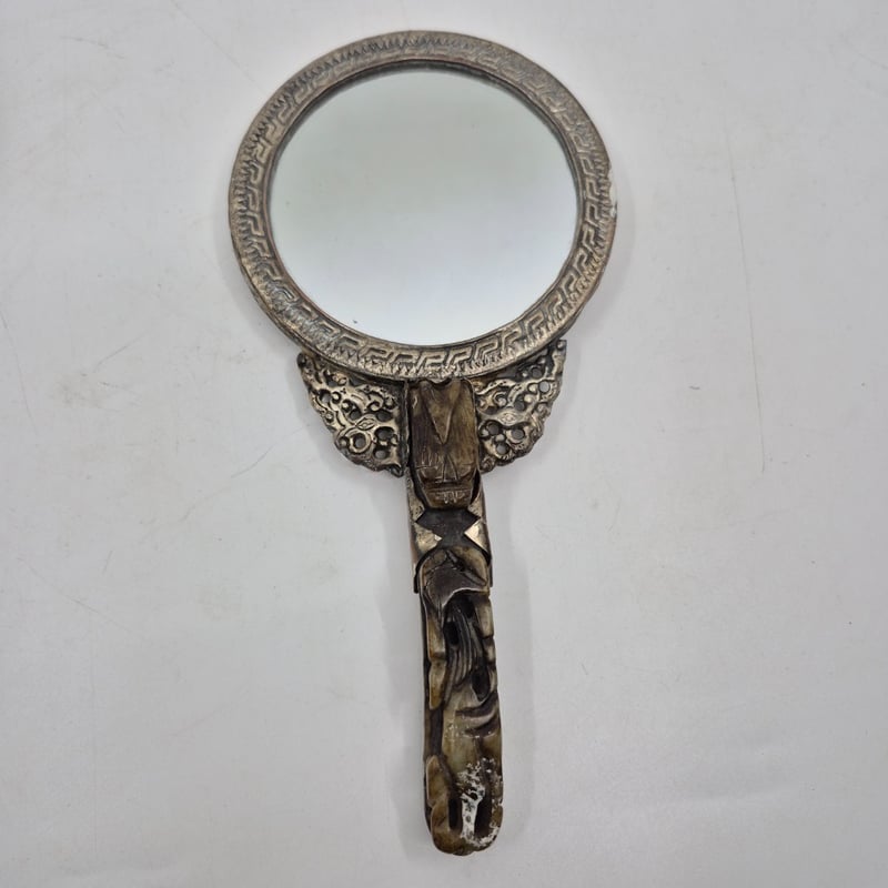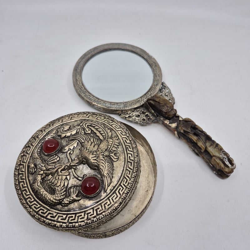 MATCHING VINTAGE CHINESE JADE HAND MIRROR AND JEWELLERY BOX