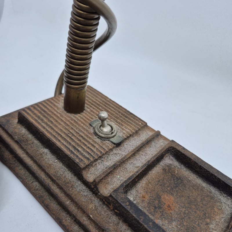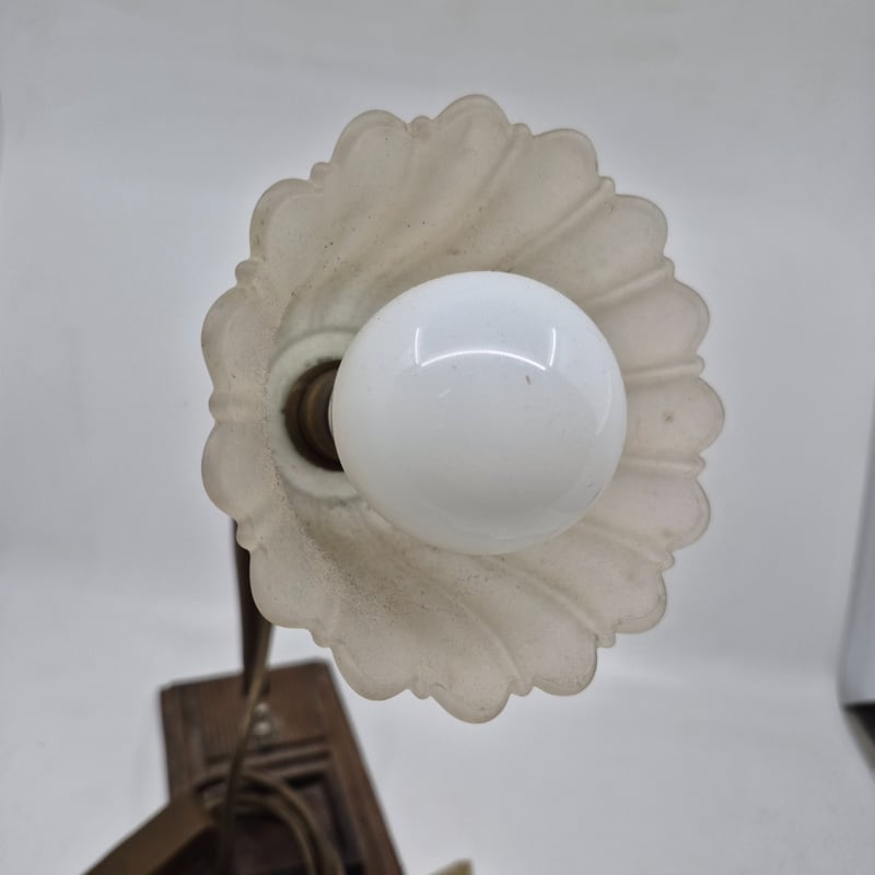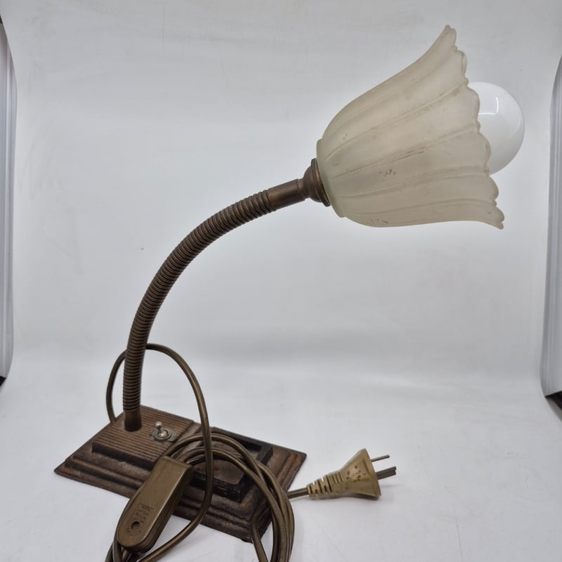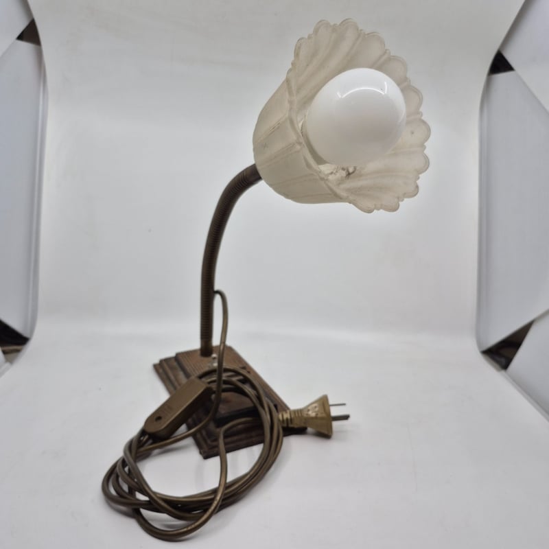 VINTAGE BRASS DESK LAMP WITH FLORAL FROSTED GLASS SHADE