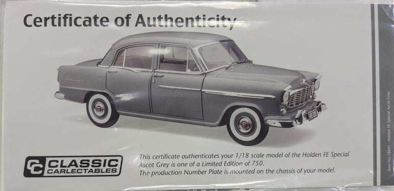 MODEL CAR 1:18, HOLDEN FE SPECIAL ASCOT GREY, CLASSIC CARLECTABLES.