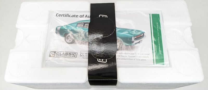 CAR MODEL 1:18, 1972 E38 R/T CHARGER CUSTOM GREEN METALLIC OPAL, CLASSIC CARLECTABLES.Item Size: Height: 17cm, Width: 34cm, Depth: 17cm, Weight: 1KgE38 R/T Charger Custom Green Metallic OpalProduct Code: 18544Brand: Classic CarlectablesScale: 1:18Release Date: 1/09/2014Limited Edition Quantity: 1000Type: CustomComes With Certificate Of Authenticity.Condition: Good - Refer To ImagesFC1162984+81