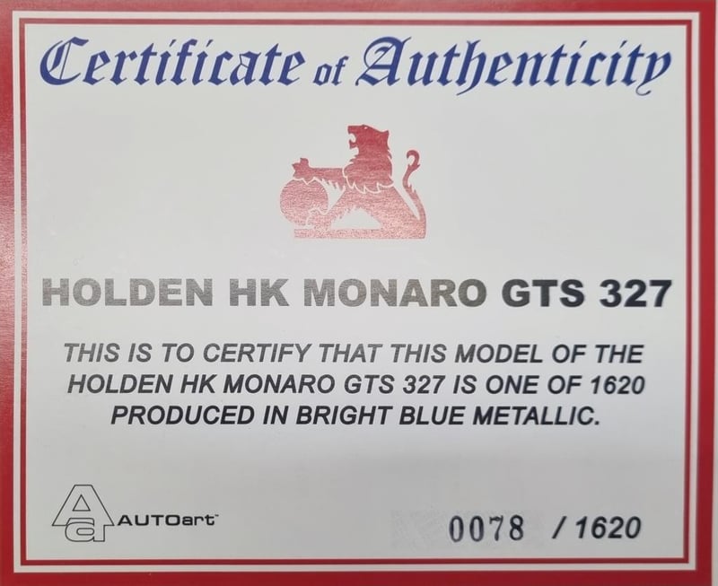MODEL CAR 1:18, HOLDEN HK MONARO GTS 327, #0078/1620 AUTOART.