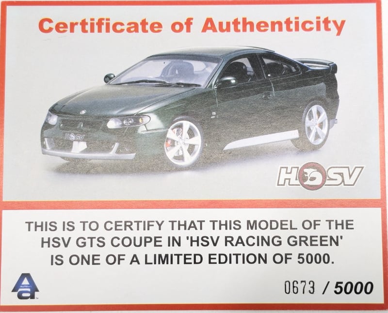 MODEL CAR 1:18, HSV GTS COUPE, #0673/5000 AUTOART.