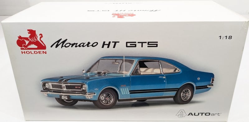 MODEL CAR 1:18 1969 HOLDEN MONARO HT GTS, #0439/3000 AUTOART.Item Size: Height: 17cm, Width: 34cm, Depth: 17cm, Weight: 1KgMake/Model: Holden Monaro Ht GtsScale: 1:18Colour: Monza BlueManufacturer: Biante/AutoartCondition: Good - Refer To ImagesFC1162984+125