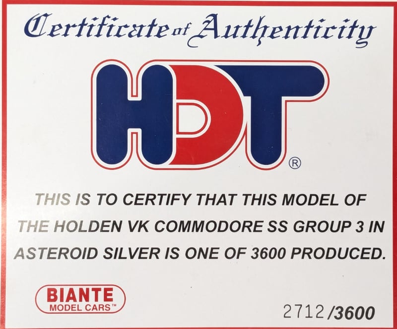 MODEL CAR 1:18 HOLDEN HDT VK SS GROUP THREE, #2712/3600 BIANTE