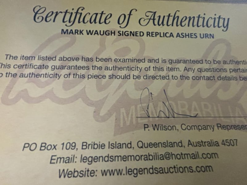 Mark Waugh Personally Signed Replica Ashes Urn.The Item Is Accompanied By A Certificate Of Authenticity.