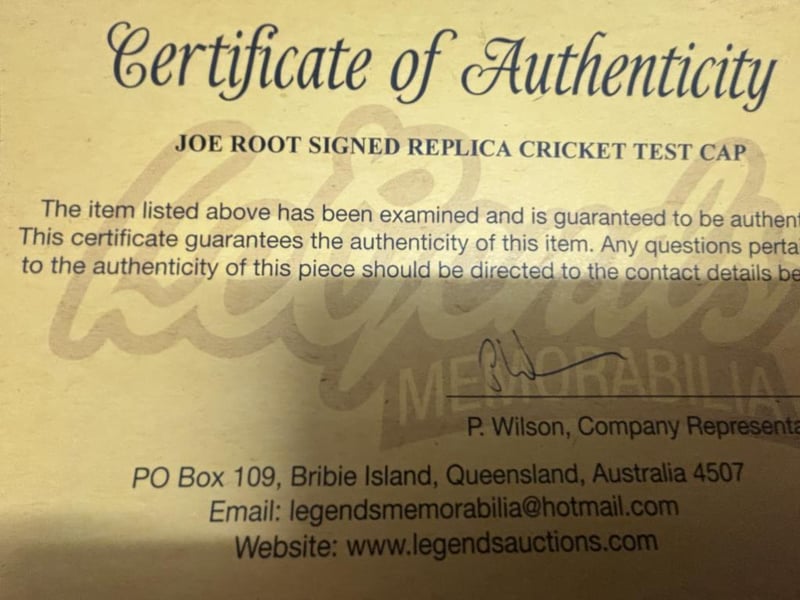 Joe Root Personally Signed Replica English Test Cricket Cap. The Item Is Accompanied By A Certificate Of Authenticity.