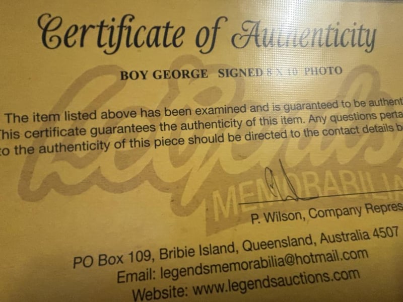 Boy George Personally Signed 8 X 10 Photo. The Item Is Accompanied By A Certificate Of Authenticity.