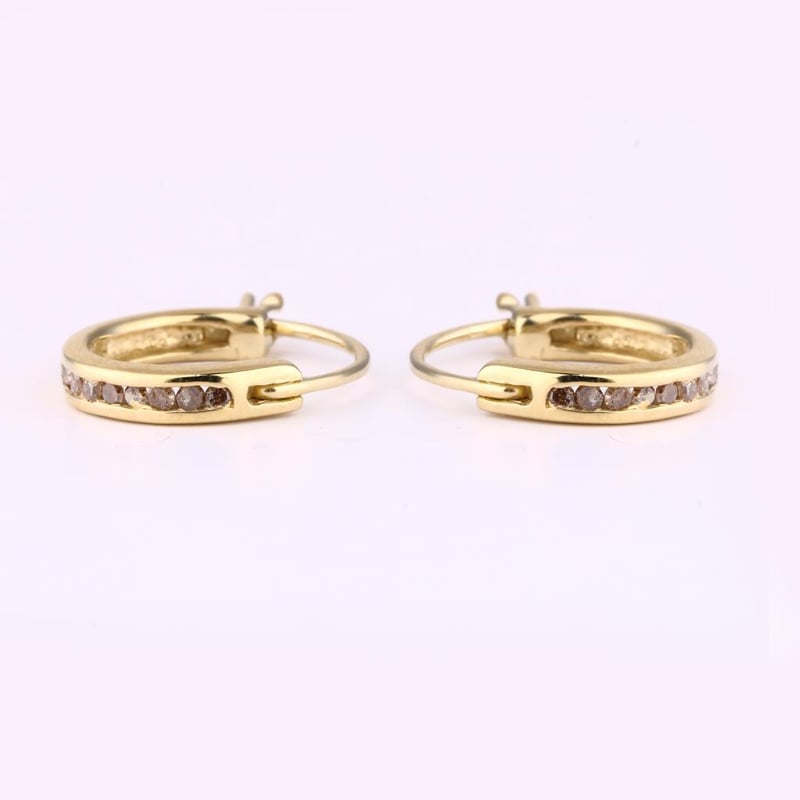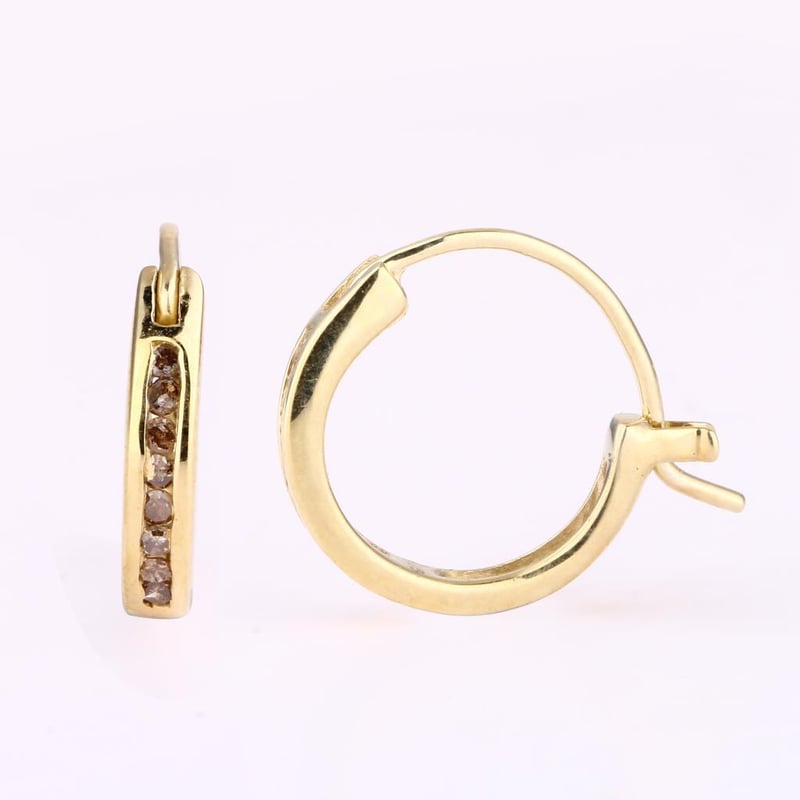 Champagne Elegance: 16-Piece Round Diamond EarringsIndulge in the exquisite allure of these Champagne Diamond Earrings, a stunning testament to luxury and sophistication. Each earring features sixteen meticulously set round diamonds, each 1.20mm in size, that shimmer with a captivating warmth reminiscent of sun-kissed champagne. The delicate arrangement of these diamonds creates a dazzling cascade of light, making them the perfect accessory for both everyday elegance and special occasions. The subtle yet striking hue of the champagne diamonds adds an element of uniqueness, setting these earrings apart in a sea of traditional jewelry. Crafted with precision and an eye for detail, these earrings are not just a piece of jewelry; they are a statement of refined taste and opulence. Elevate your collection with this enchanting pair that promises to catch the eye and ignite admiration wherever you go. Don’t miss your chance to own a piece that embodies timeless elegance—bid now and let your style shine!