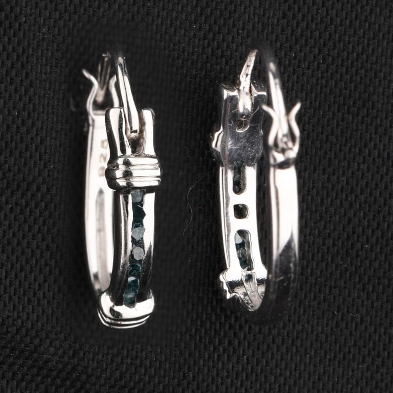 Radiant Blue Diamond Cascade EarringsIndulge in the allure of timeless elegance with these exquisite Blue Diamond Cascade Earrings. Crafted to perfection, these stunning earrings feature a harmonious blend of blue diamonds, showcasing two captivating round stones of 1.30mm, four shimmering 1.10mm stones, and eight dazzling 1.00mm stones. Each diamond is carefully selected for its remarkable clarity and vibrant hue, creating a breathtaking visual symphony that dances with light.The cascading arrangement of these gems evokes the mesmerizing depths of the ocean, capturing the essence of luxury and sophistication. Set in a refined metal that enhances their enchanting blue tone, these earrings are not just a piece of jewelry; they are a statement of opulence and grace. Whether worn for a glamorous evening affair or as a striking complement to your everyday ensemble, these earrings promise to elevate any look with their radiant charm.Embrace the beauty of these blue diamonds and let them be a testament to your exquisite taste and style. Bid now to make these dazzling earrings your own and illuminate your collection with their exquisite sparkle.