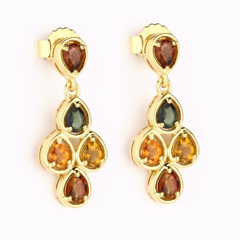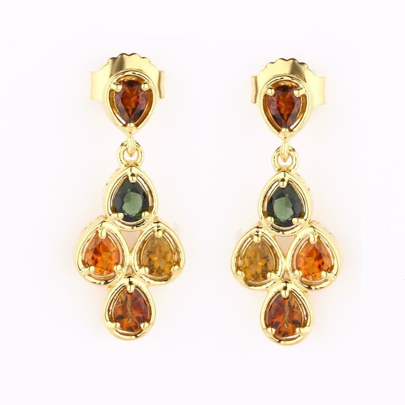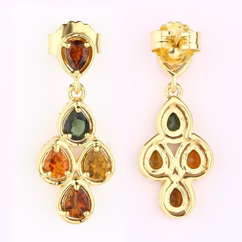 A Symphony of Colors: Exquisite Tourmaline Pear Earrings Indulge in a vibrant celebration of nature’s palette with these stunning tourmaline pear earrings, designed to elevate any ensemble with their enchanting hues. Each piece features an exquisite collection of six breathtaking tourmaline stones—two pairs of pink, green, yellow, brown, and orange tourmaline, each measuring a delicate 4x3mm. The alluring pink tourmaline evokes the soft blush of a sunset, while the verdant green stones bring to mind lush, serene landscapes. The bright yellow tourmaline radiates warmth and optimism, complemented by the rich, earthy tones of the brown variety that ground the composition. Finally, the vivacious orange tourmaline adds a playful pop of color, reminiscent of autumn leaves kissed by the sun. Crafted with meticulous attention to detail, these push post earrings not only offer comfort but also ensure a secure fit, allowing you to showcase their vibrant beauty effortlessly. Perfect for any occasion, from a sophisticated evening gala to a casual brunch, these earrings are a true testament to the artistry of fine jewelry. Embrace the kaleidoscope of colors and let your style shine with these captivating tourmaline earrings, where elegance meets playful sophistication.