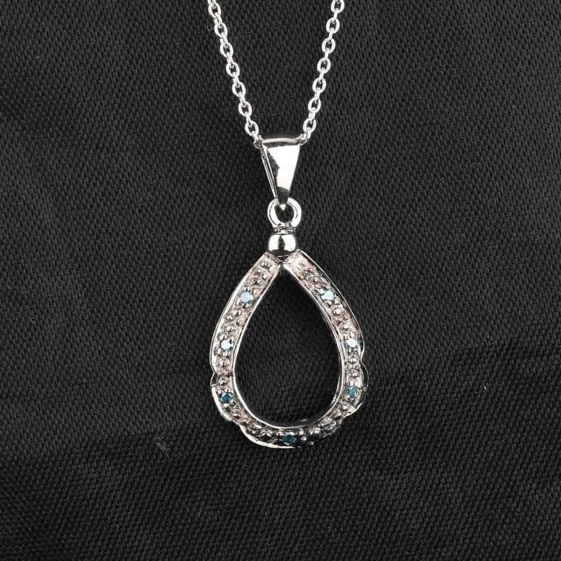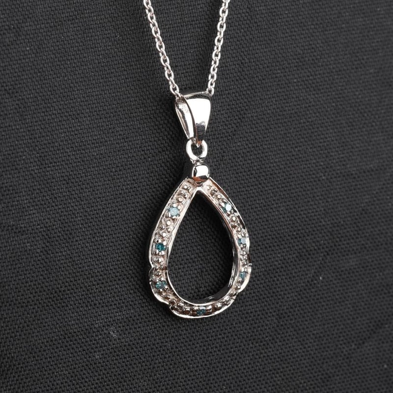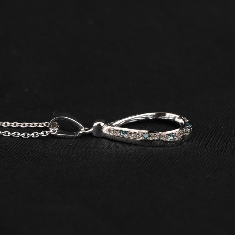 Exquisite Blue Diamond Pendant - A Celestial Elegance Indulge in the mesmerizing allure of this stunning pendant, featuring seven brilliant blue diamonds, each meticulously cut into 1.20mm rounds. Set against a backdrop of luxurious black pen rhodium, these gems radiate an ethereal glow, reminiscent of a starlit night sky. Crafted with precision, the pendant not only showcases the exceptional quality of the diamonds but also boasts a robust metal weight of 1.50 grams for lasting elegance. The addition of a 5.50mm spring lock ensures a secure and comfortable fit, allowing you to wear this piece with confidence. This exquisite piece is a true testament to sophistication and style, perfect for elevating any occasion. Whether worn alone or layered with your favorite chains, this pendant will undoubtedly captivate hearts and turn heads. Embrace the beauty and rarity of these blue diamonds, and let this pendant be a cherished addition to your jewelry collection.