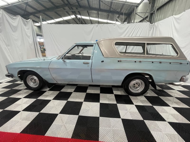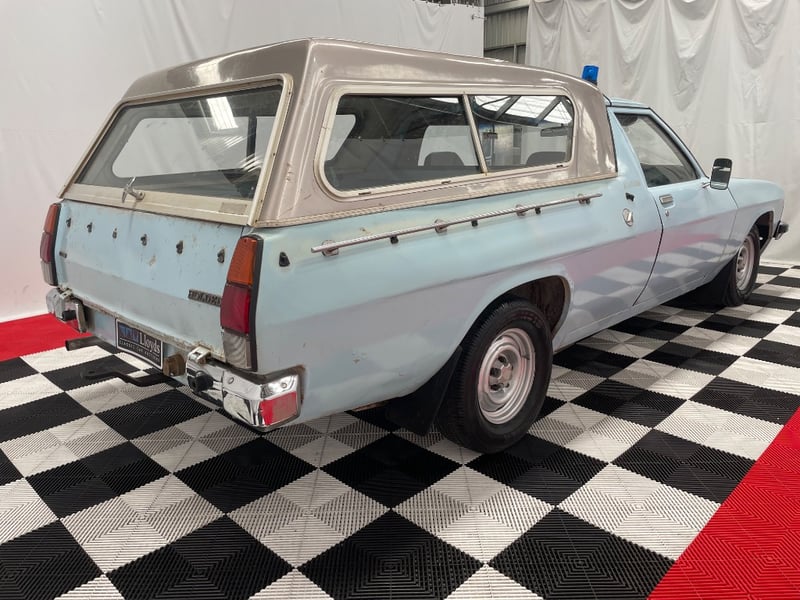 This WB Ute is an ex–South Australian Police production vehicle and is supplied with its build certificate. It features a vinyl bench seat, towbar, air-conditioning and a fibreglass canopy. The engine and transmission have recently been serviced. Cosmetic wear is present, including marks, scratches and rust evidence, consistent with age and use.