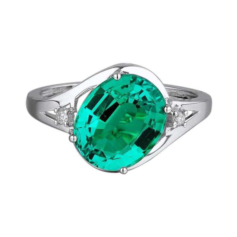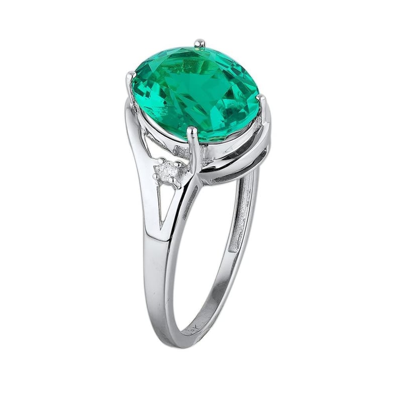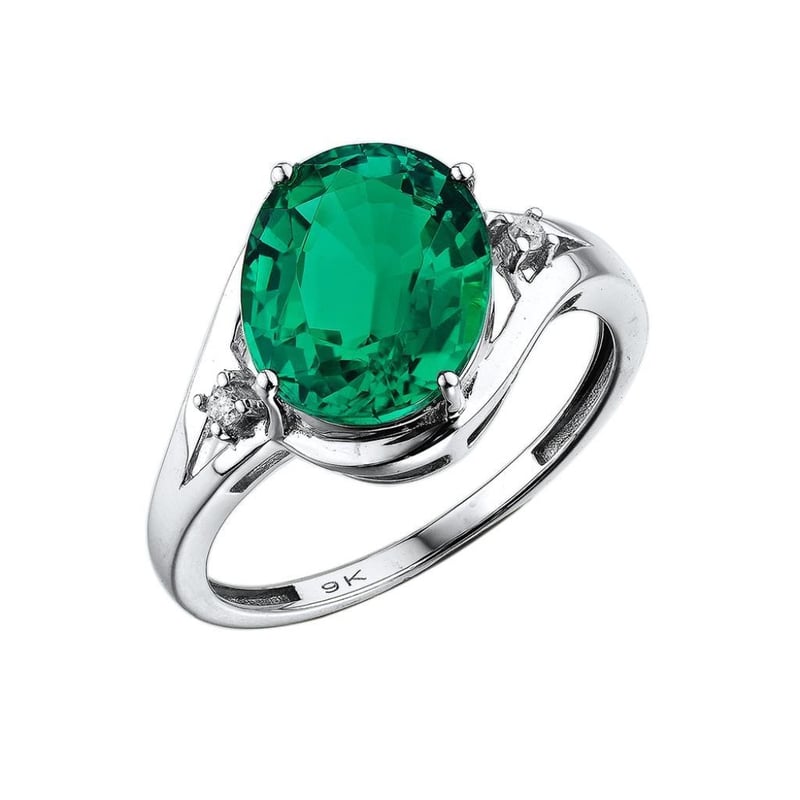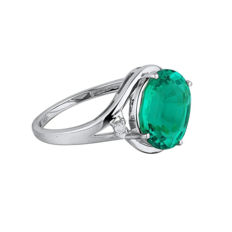 3.46 CARAT LAB GROWN EMERALD AND 3.46 Carat Lab Grown Emerald And Diamond Solid Gold Ring 1 Lab Grown Emerald = 3.43 2 Diamonds = 0.03 Ring Weight = 2.62 Grams Condition: Good - Refer Images 0488974+107