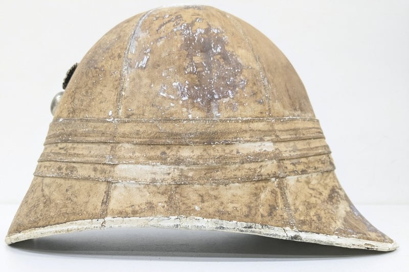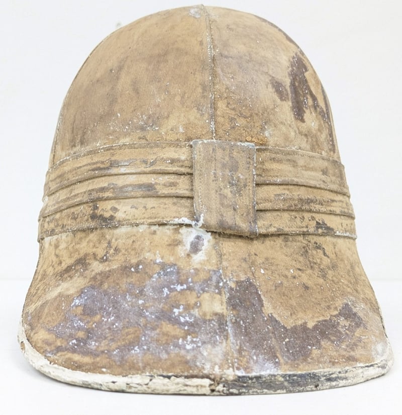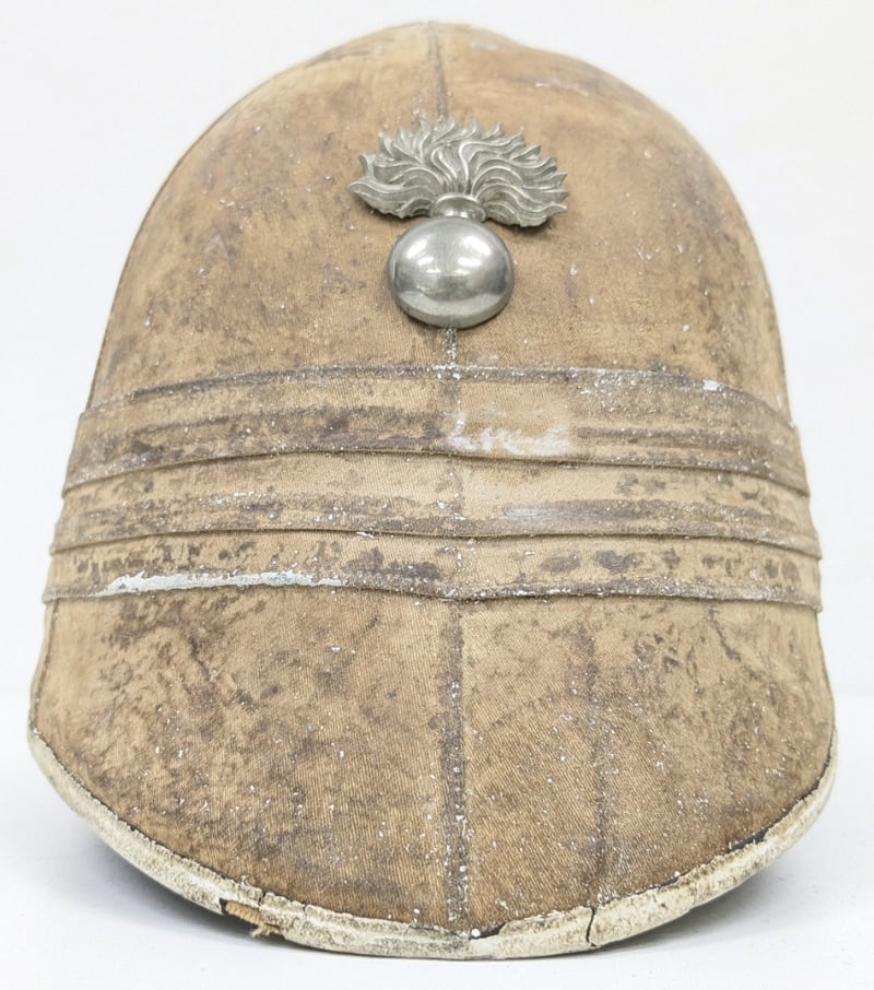 PRE FEDERATION VICTORIAN VOLUNTEERS ARTILLERY HELMET AND COLLAR BADGES A/F CONDITION BUT DISPLAYS WELL