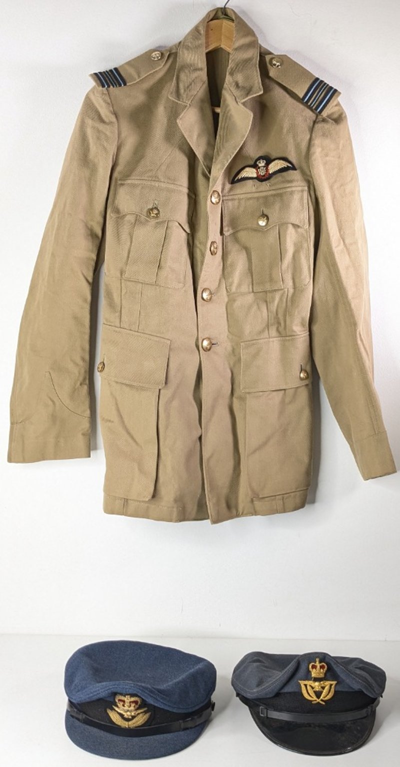 2 X RAF CAPS 1 OFFICERS 1 WARRANT OFFICERS PLUS KHAKI PILOTS JACKET