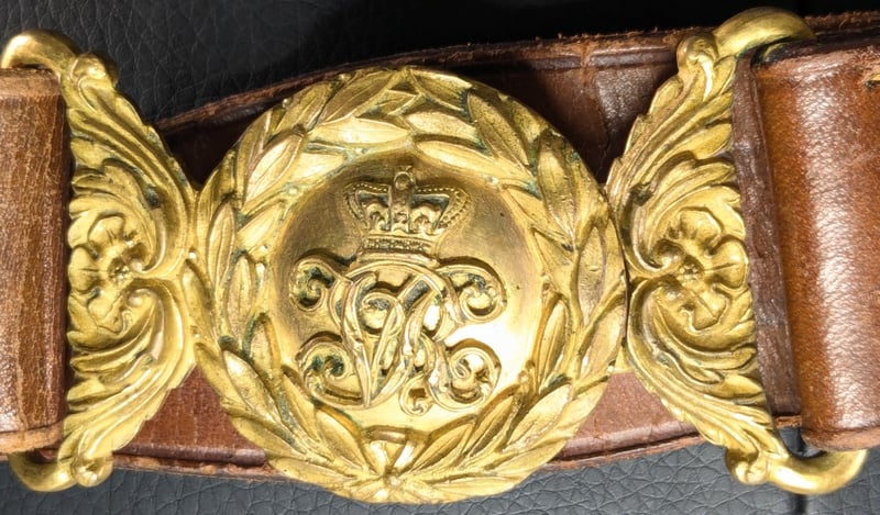 VICTORIAN ERA BROWN SWORD BELT VR BUCKLE OFFICERS.
