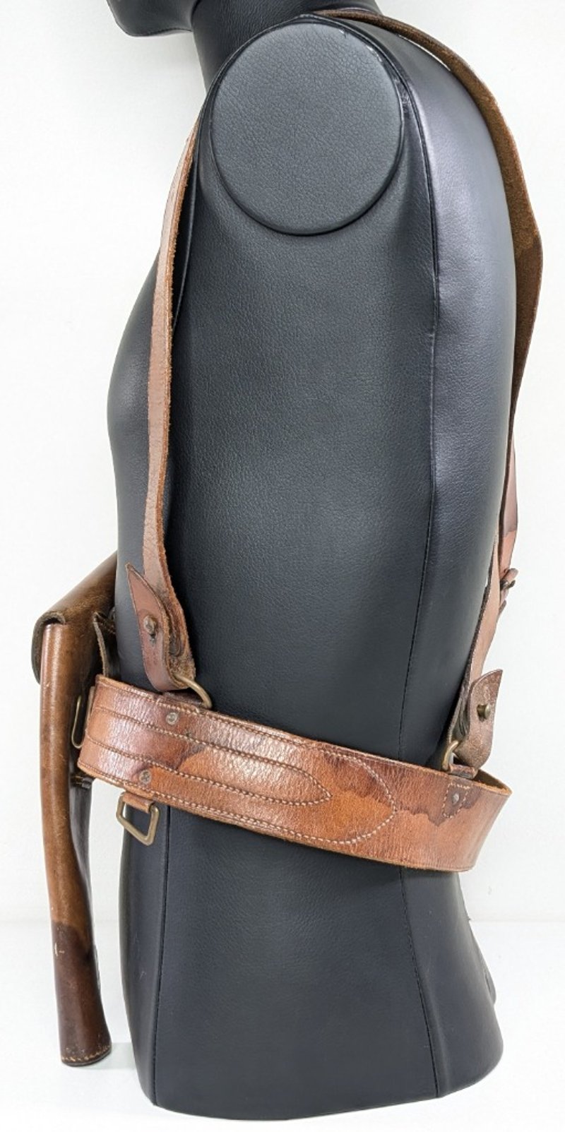 DOUBLE BRACE WW1? SAM BROWNE WITH HOLSTERItem Size: Height: 55cm, Width: 30cm, Depth: 10cm, Weight: 1KgCondition: Good - Refer To ImagesFC1B163013+160