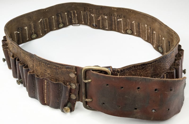 BOER WAR LEATHER BANDOLIER NAMED AND MODIFIED BY BOER
