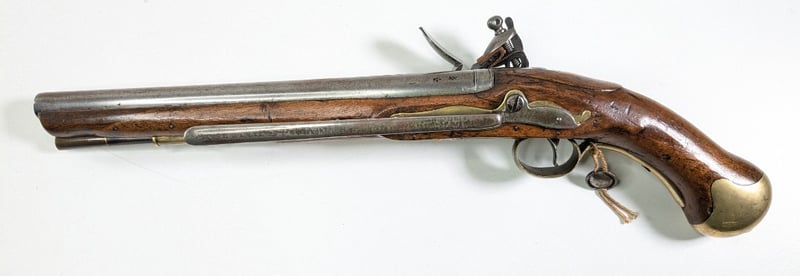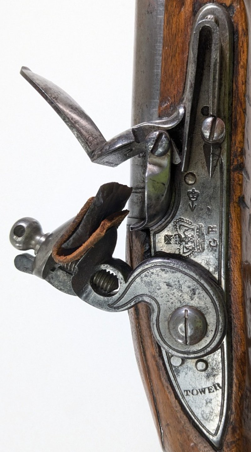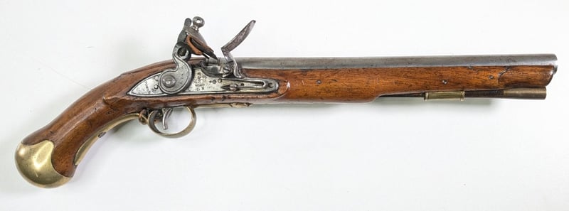 GEORGIAN NAVAL SEA SERVICE FLINTLOCK PISTOL GR MARKED TOWER MARKED HAS NAVAL BELT HOOK