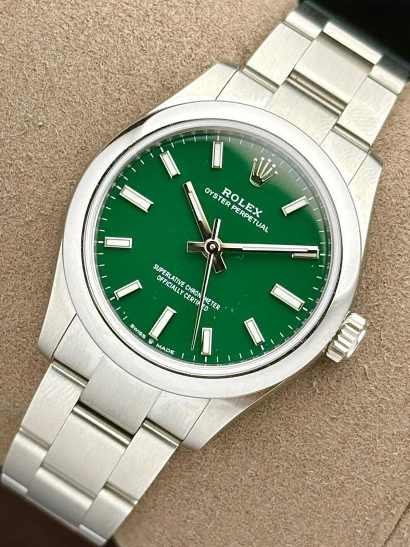 2022 ROLEX OYSTER PERPETUAL 31 GREEN DIAL STAINLESS STEEL 31MM