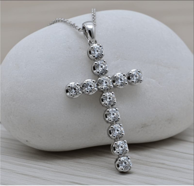 18K WHITE GOLD LAB GROWN ROUND CROSS PENDANT 0.79 CT D - E VVS+
