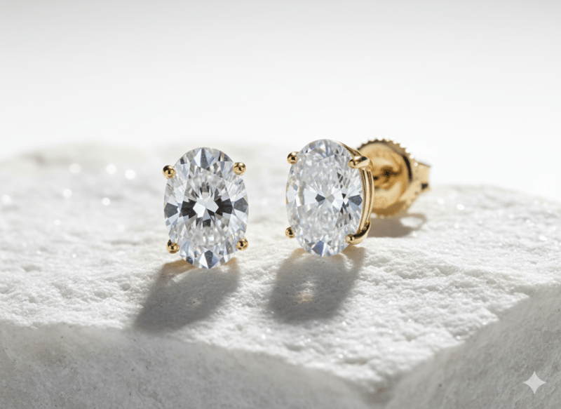 14K YELLOW GOLD LAB GROWN OVAL EARRING