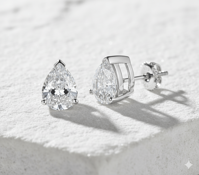 14K WHITE GOLD LAB GROWN PEAR EARRING