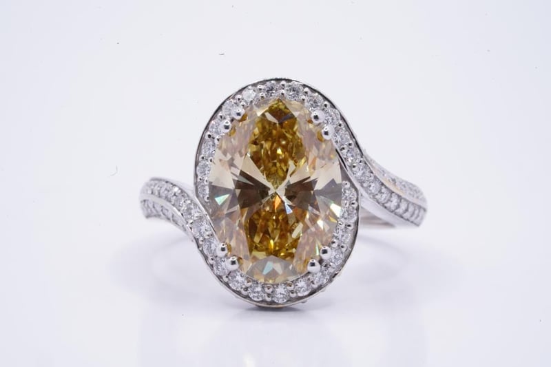 18K WHITE GOLD 5.96CT YELLOW VVS-VS1 LAB GROWN OVAL RING