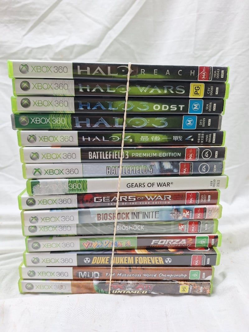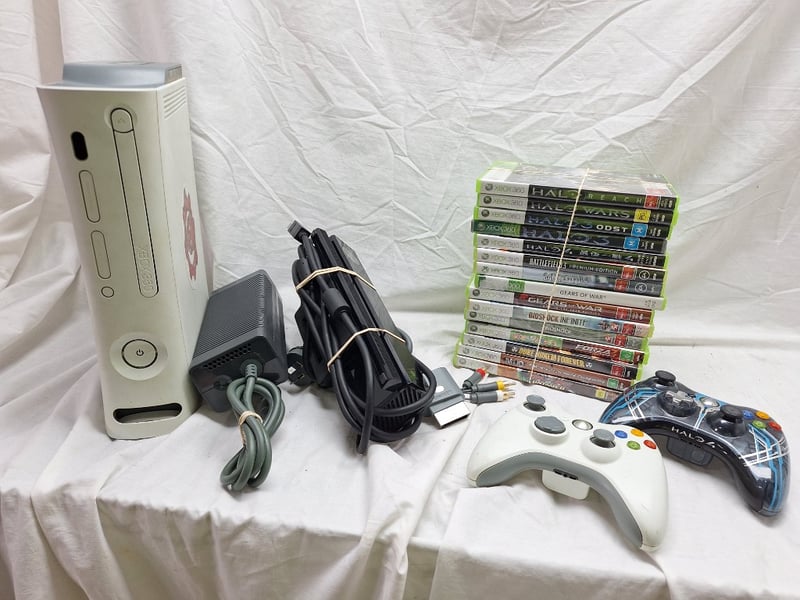 XBOX 360 HALO Item Size: Height: 27cm, Width: 54cm, Depth: 32cm, Weight: 15Kg Xbox 360 Halo Bundle With 15 Games & Limited Edition Halo 4 Controller Condition: Good - Refer To Images 586303+5