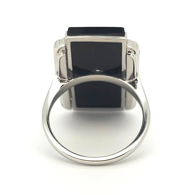 14CT WHITE GOLD ONYX AND DIAMOND ART DECO STYLE RING