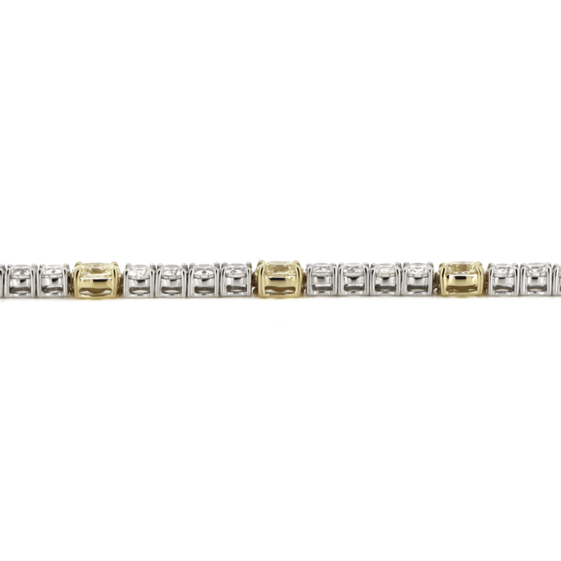 14K WHITE/YELLOW GOLD, 6.25CT TDW FANCY YELLOW DIAMOND AND DIAMOND, TENNIS NECKLACE.