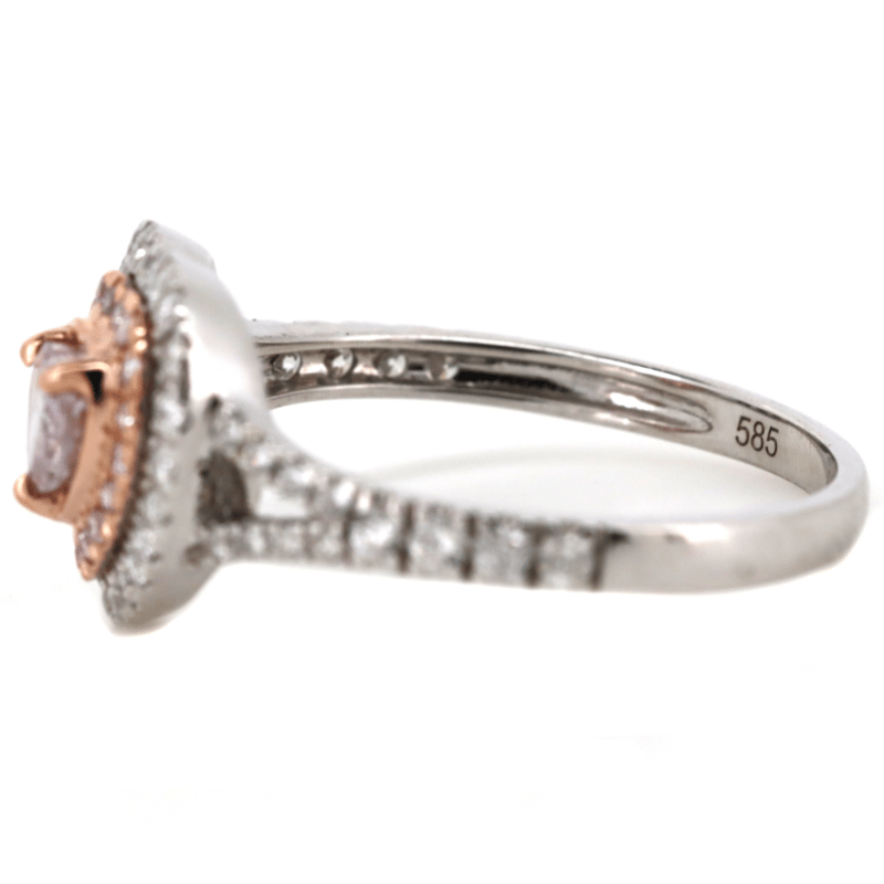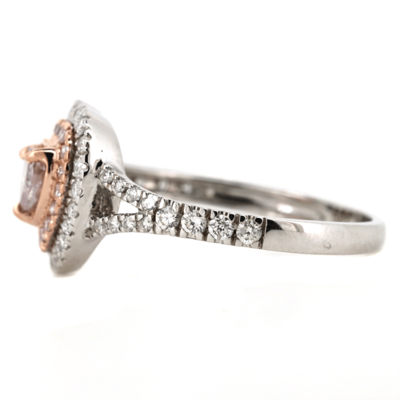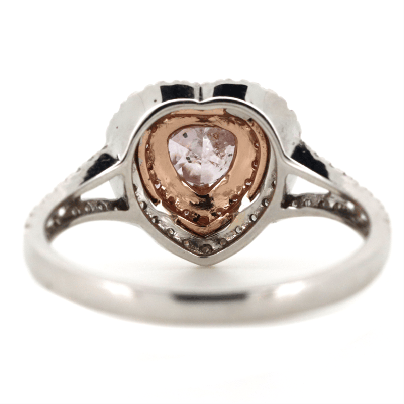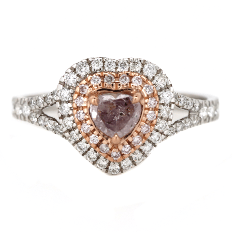 14K WHITE/ROSE GOLD, FANCY PINK DIAMOND AND DIAMOND, DOUBLE HALO HEART RING. The Centre Features, One Heart Modified Cut, Fancy Light Diamond (0.34Ct, I2 Clarity), Claw Set In Rose Gold. Decorating The Innermost Halo Are, 17 Round Brilliant Cut, Fancy Light Pink Diamonds (0.07Ct Tdw, Si Clarity), Bead Set In Rose Gold. Decorating The Outermost Halo And Decorating The Split Band Are, 47 Round Brilliant Cut, Diamonds (0.32Ct Tdw, G-J Colour, Si-I2 Clarity), Bead Set. Ring Size M. Valuations Provided by an Independent Third-Party Professional Not Directly Associated With Lloyds Auctions at AUD $$23,900.00This valuation has been conducted by an independent third-party professional. The valuation amount is an assessment by the issuing valuer and does not reflect the auction value of the item. Any inquiries regarding the valuation should be directed to the issuing valuer (refer to contact details on the certificate), as Lloyds Auctions has no affiliation or influence over the valuation, the valuer, or the stated amount. Condition: Good - Refer Images 0645904+5041
