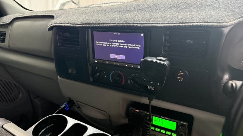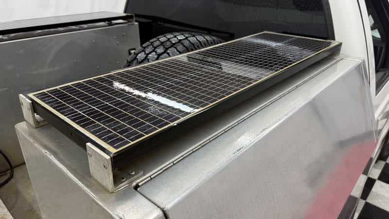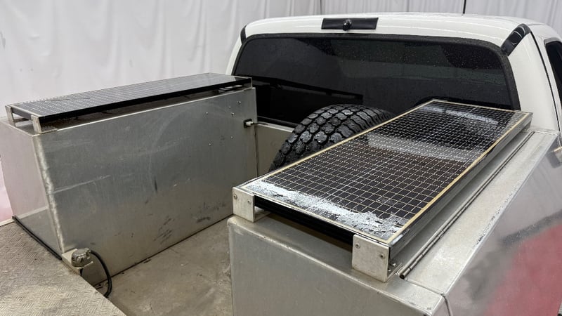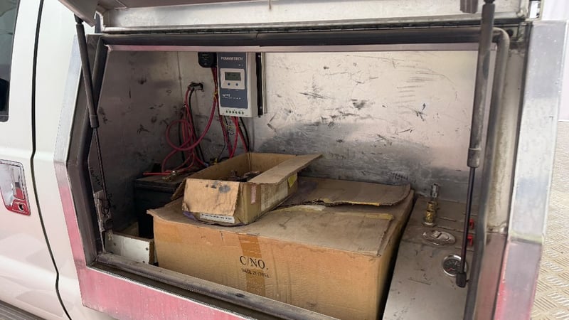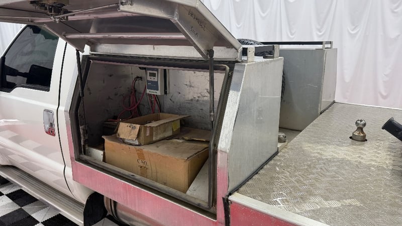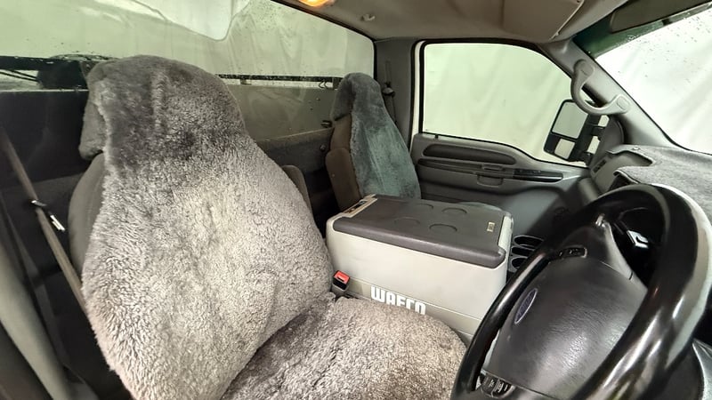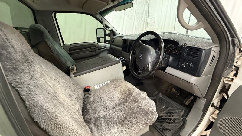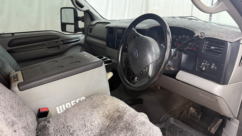 This example is fitted with air conditioning, power windows, SRS, cruise control, central locking, alloy wheels, and a bullbar. Additional equipment includes toolboxes, solar panels, a gooseneck trailer hitch, and a fridge integrated into the centre console. Presented as a well-equipped workhorse suited to towing or commercial use.