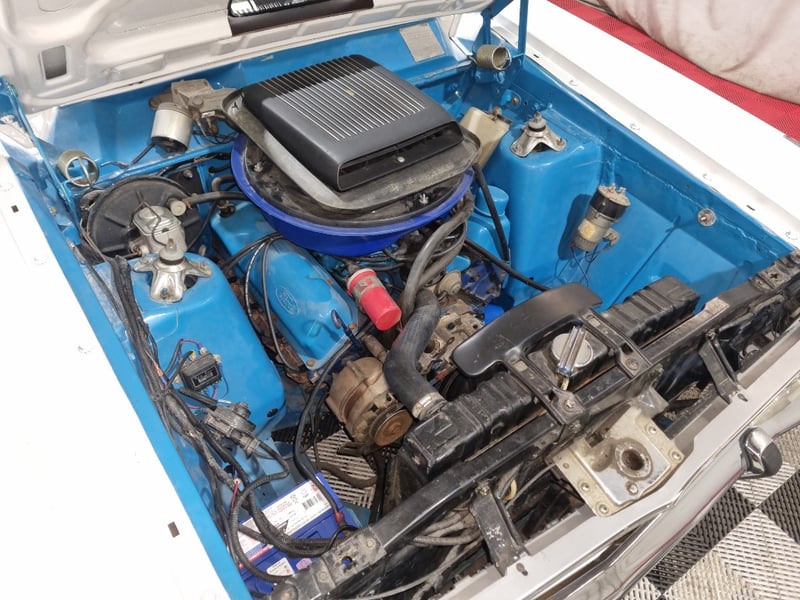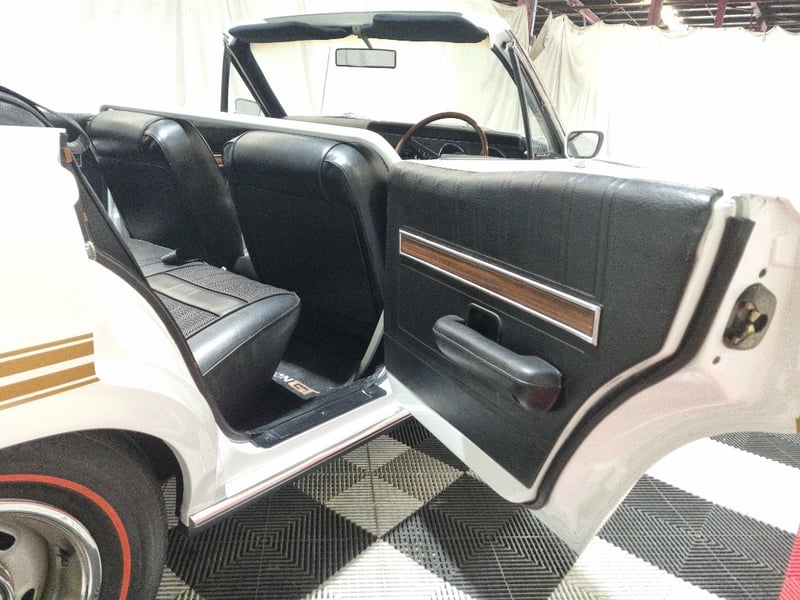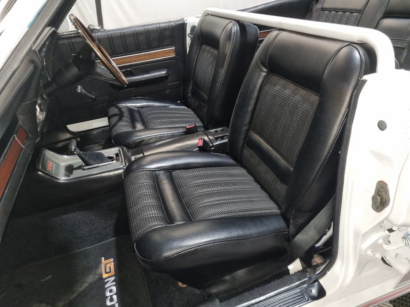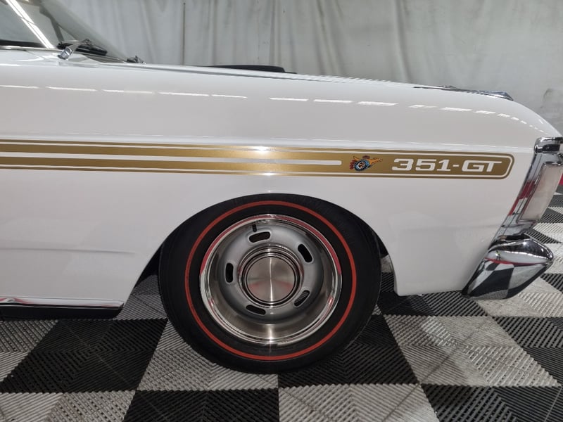 Under the bonnet lies the legendary 351ci Cleveland V8 paired with a 3-speed automatic transmission. Finished in classic white with GT stripes, it wears the iconic shaker bonnet with GT pins, 5-slot wheels, and correct GT badging. Inside, black basket weave trim with matching door cards gives it the proper period-correct GT look. With only 400 miles indicated since its build, it presents as a fresh and striking example.