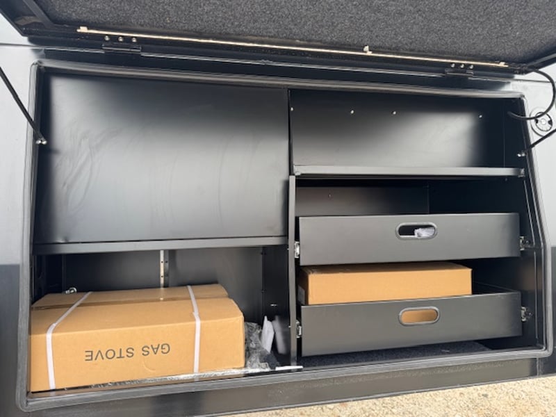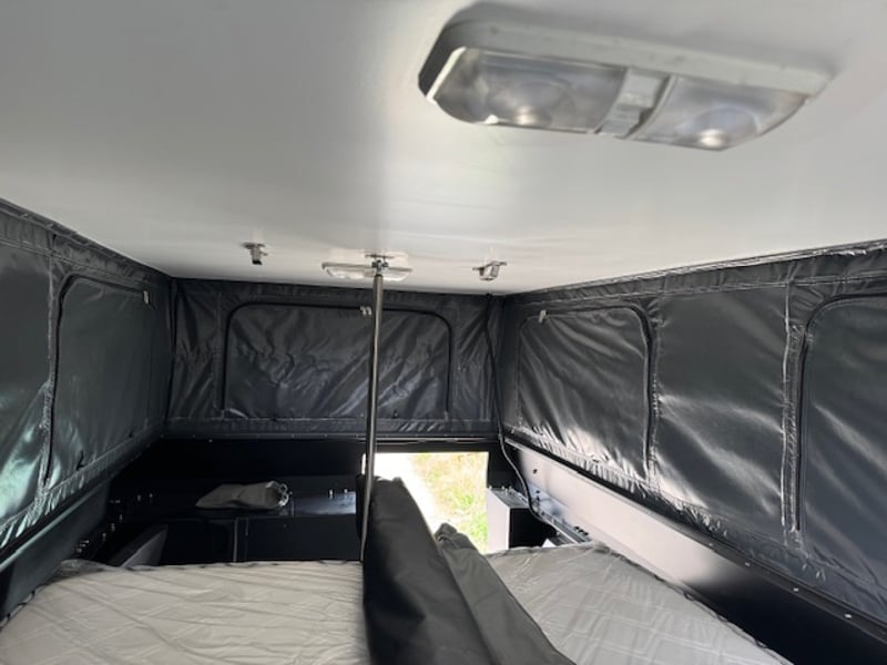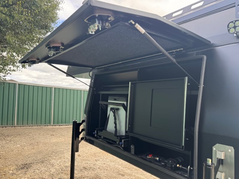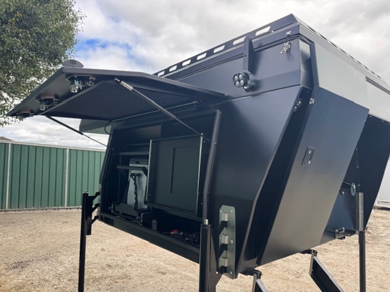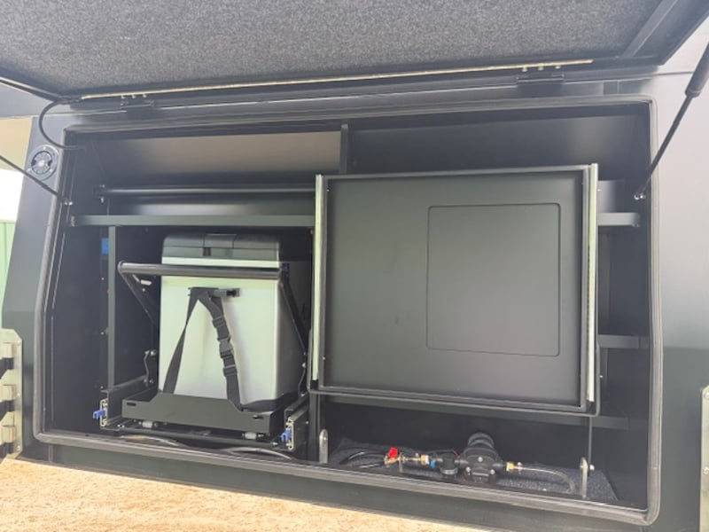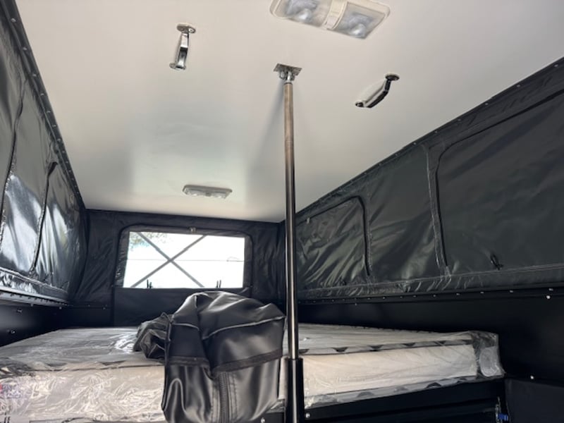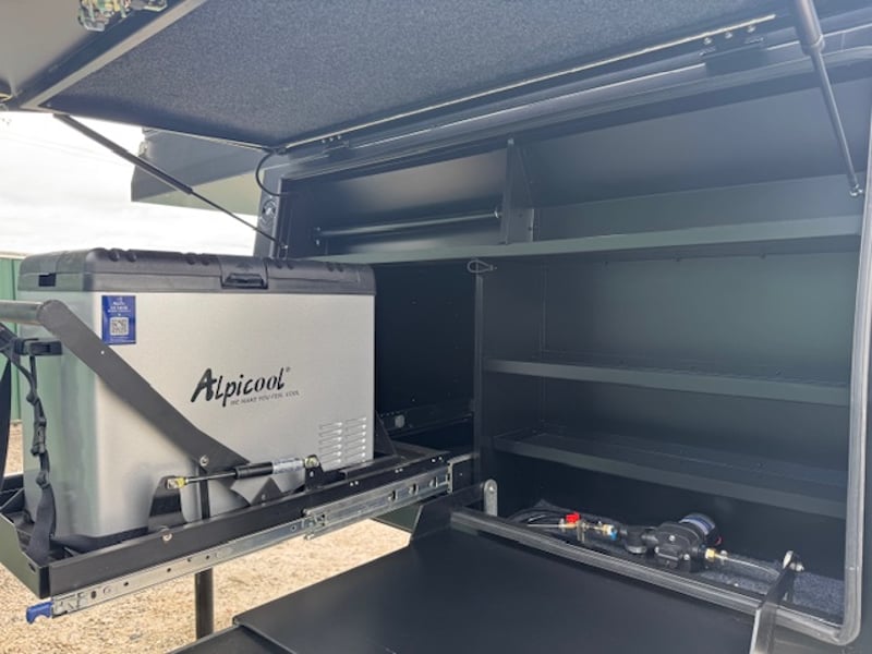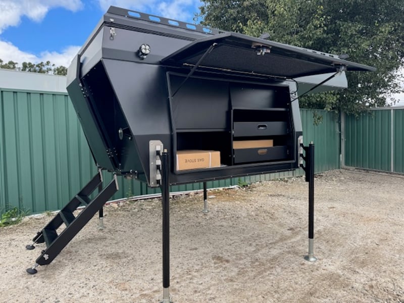 Description/Extras: Chassis: Aluminium Chassis and frame light weight, Stabilizer legs & Wheels: 4 x Adjustable legs (lifting camper) free standing, Camper Details: Simple setup, it only takes you around 90 seconds to setup the main tent, Self-supporting modern design, High Strength Aluminium Frame, Door: Entry door with locks, All doors are lockable & fully sealed to prevent water & dust ingress, Interior & Features: Stainless steel sink with fold away tap, AGA approve 4 burner gas stoves with quick connection (moveable) cook inside or outside , Wind Protector, 200 Litre food grade plastic water tank, High pressure electric water pump with quick release connector, Lighting system: 1 x LED light each side door, 2x dome lights, 3x spotlights outside body, Water system, 1x electric water pump, 1x water filter, 1 x tap, Electric system: 2x Deep Cycle Battery 100AH, 2000watt inverter 240v, 30Amp DC Battery Charger, Additional Features: 50L fridge, Aluminium ladder, Pulling and lifting fridge drawer, Portable toilet, 200w solar panel, 8L cheap water heater , Bed: 2000mm x 1500mm coil spring mattress