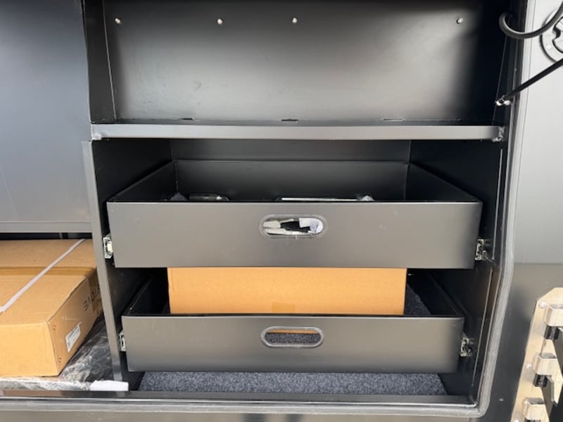 Body and Chassis, Overall Size: External Measurements: 3430mm(L) x 1975mm(W) x 1500mm (H),External Measurements tent open: 3430mm(L) x 1975mm(W) x 2100mm(H), Body Measurements: 1850mm x 1975mm x 1065mm, Body: 3mm aluminium panel