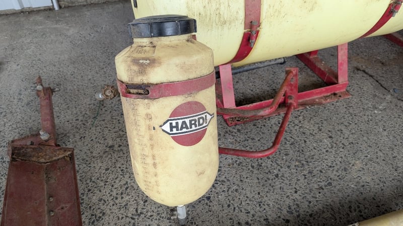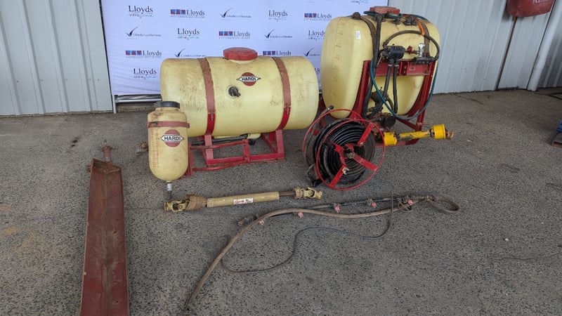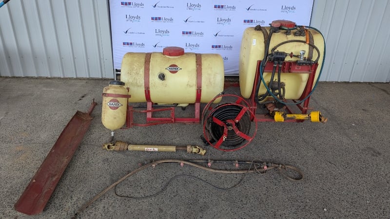 Hardie Sprayer Unit, Glostrup DK - 2600, Type: NK 300, 2 × 300 Litre Tanks, Hose and Reel with Hand Gun, Smaller 15 Litre Tank, Spray Hose, 3 Point Linkage, 110cm Boom Arm with Cover, Dimensions Tank 1:110cm(H)×80cm(W)×80cm(D), Tank 2: 85cm(H)×110cm(W)×60cm(D)