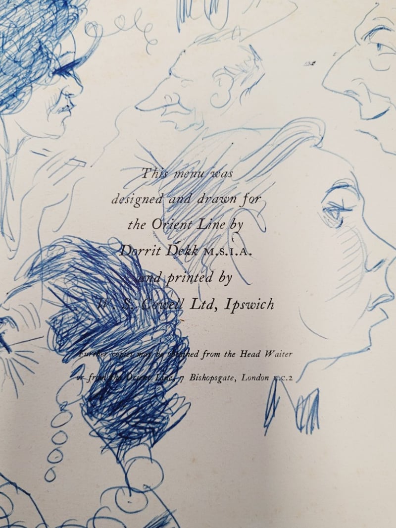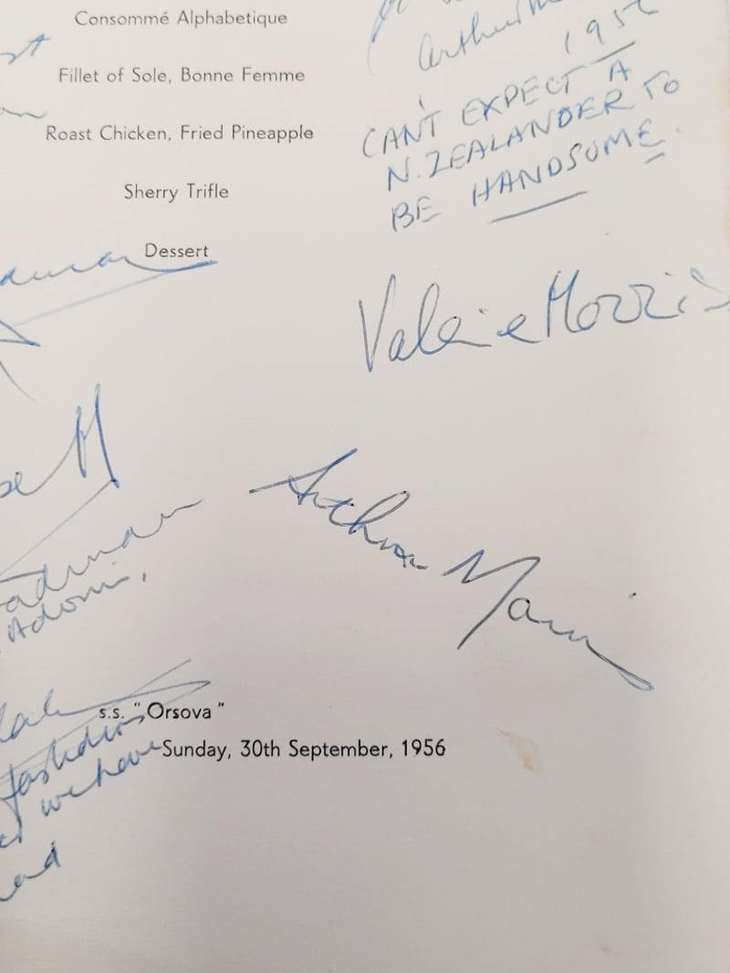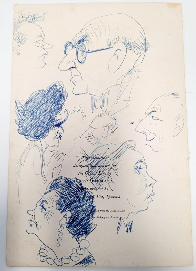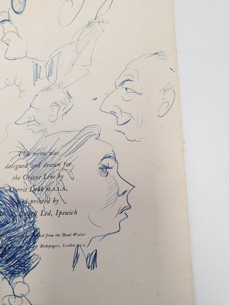 Original 1956 Tour Menu Featuring Sketches By Arthur Mailey With Comments By Jessie And Sir Don Bradman. Captured At A Table With Arthur & Valerie Morris And Lindsay Hassett. From The Arthur Morris Collection, A Rare, Intimate Piece Of Australian Cricket History.