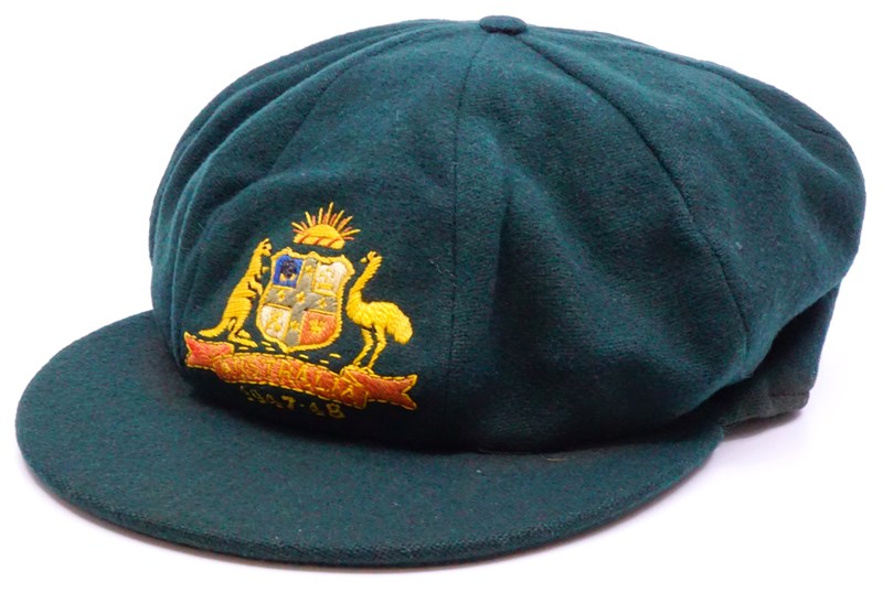 SAM LOXTON 1947/48 TEST DEBUT GAME WORN BAGGY GREEN AUSTRALIAN CRICKET CAP