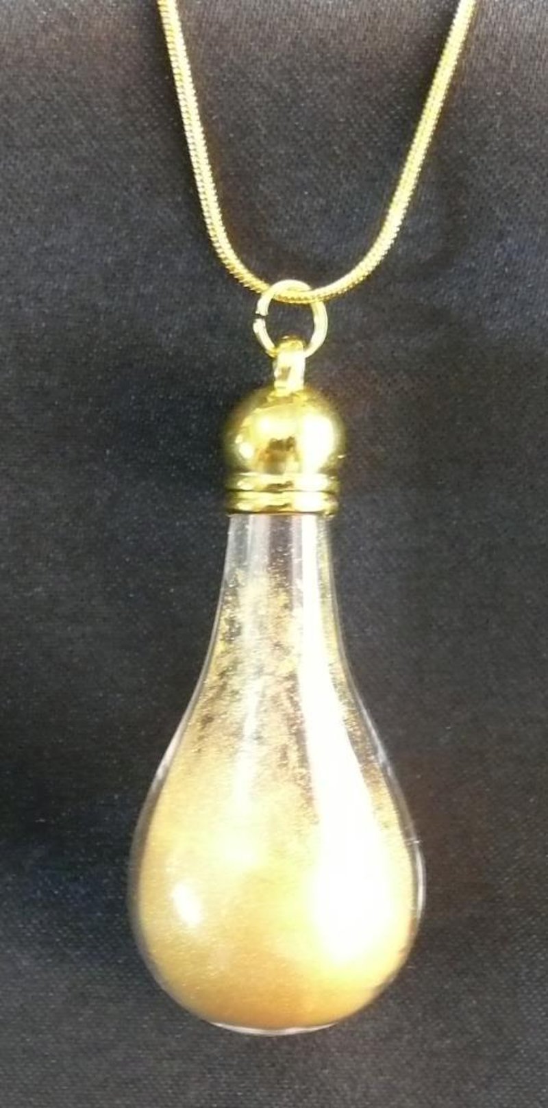 24CT. GOLD DUST IN LARGE TEAR SHAPE GLASS PENDANT, 56MM(H). 488437+33