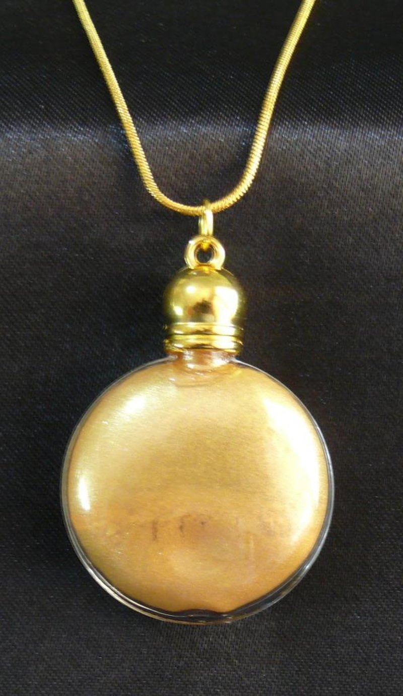 24CT. GOLD DUST IN ROUND SHAPE GLASS PENDANT, 45MM(H).