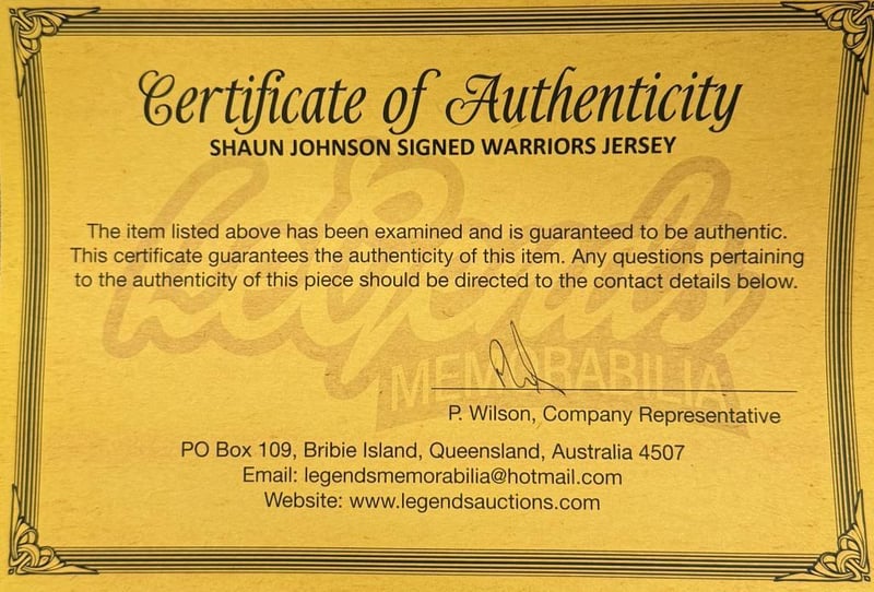 SHAUN JOHNSON SIGNED NZ WARRIORS JERSEY A Nz Warriors Jersey Personally Signed By Shaun Johnson. Shaun Johnson Is A New Zealand Former Professional Rugby League Footballer Who Last Played As A Halfback For The New Zealand Warriors In The Nrl. The Item Is Accompanied By A Certificate Of Authenticity.Condition: Good - Refer To Images585460+1