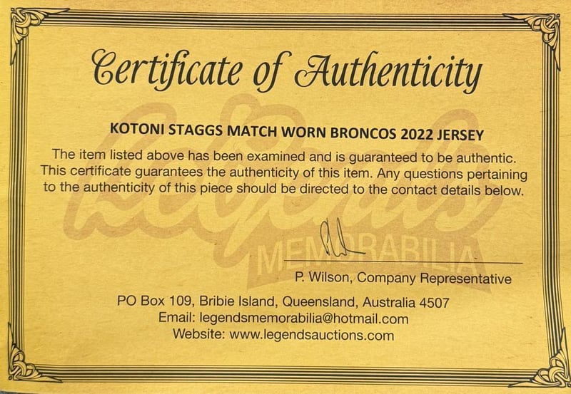 A Brisbane Broncos 2022 Jersey Personally Game Worn By Kotoni Staggs. A Rare Opportinity To Own A Jersey Worn By An Nrl Premiership Winning, Representitive Player. The Item Is Accompanied By A Certificate Of Authenticity.