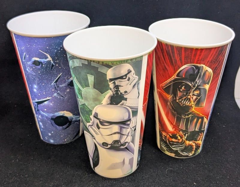 STAR WARS EPISODE III HUNGRY JACK'S 2005 SET OF 4 PLASTIC TUMBLERS AND CINEMA CUPS.Item Size: Height: 24cm, Width: 10cm, Depth: 10cm, Weight: 0.5KgStar Wars Episode Iii Hungry Jack'S 2005 Set Of 4 Plastic Tumblers Includes: Gerneral Grievous, C3Po, R2D2 And Darth Vader/Anakin Skywalker. Also Comes With A Set Of Star Wars Cinema Cups.Condition: Good - Refer To Images585076+4
