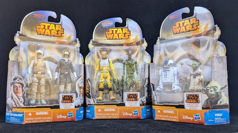 COLLECTION OF STAR WARS EPISODE V THE EMPIRE STRIKES BACK HASBRO FIGURESItem Size: Height: 20cm, Width: 6cm, Depth: 14cm, Weight: 0.3KgCollection Includes: R2D2 And Yoda, Bossk And Ig-88, Luke Skywalker And Han Solo.ACACIA RIDGE585076+5