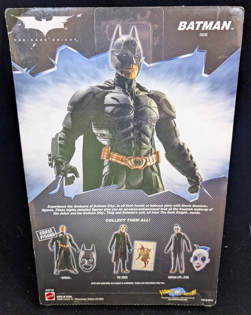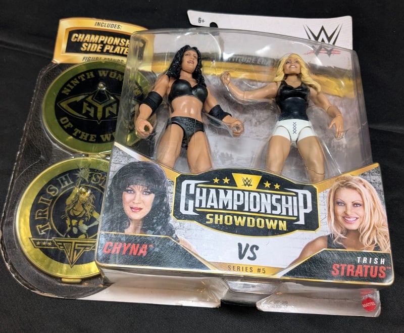 COLLECTION OF BATMAN THE DARK KNIGHT + WWE CHAMPIONSHIP SHOWDOWN FIGURESItem Size: Height: 30cm, Width: 0.5cm, Depth: 10cm, Weight: 0.3KgCollection Includes: Batman (The Dark Knight Suit) + The Joker (From Batman The Dark Knight) Mattel Figures, Wwe Chyna Vs. Trish Stratus Mattel FiguresCondition: Good - Refer To Images585076+8
