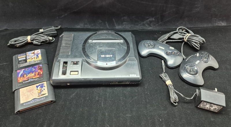 SEGA MEGA DRIVE 16-BIT CONSOLE COMPLETE BUNDLE WITH GAMES AND CONTROLLERSGamws Including Aladdin, Sonic The Hedgehog And Pele SoccerUntestedCondition: Good - Refer To Images8587860+2