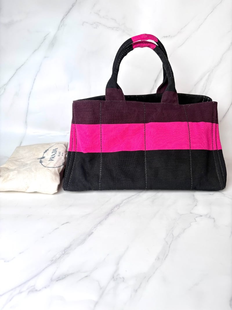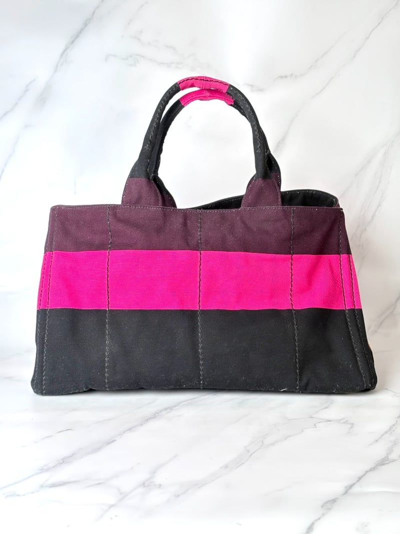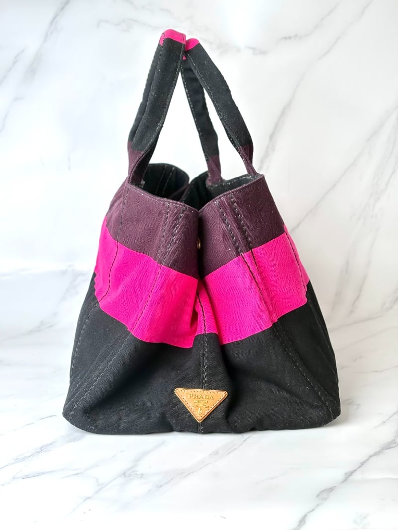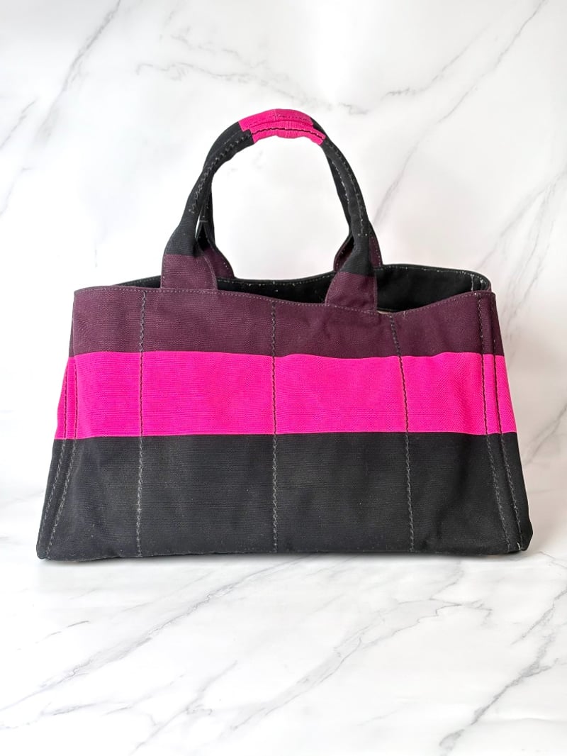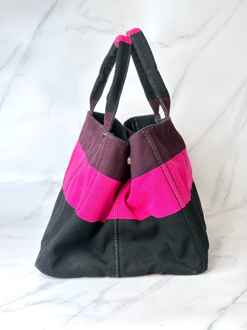 PRADA CANVAS TOTE BAG PINK BURGANDY